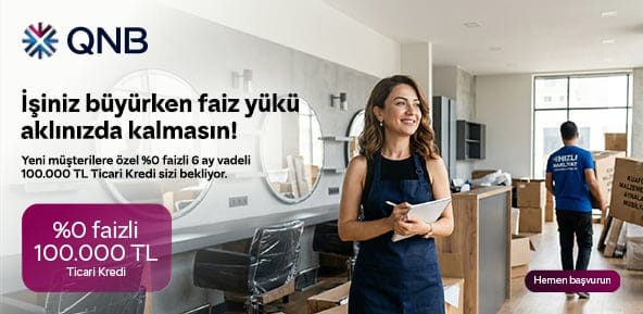 Yeni müşterilere özel %0 faizli 6 ay vadeli 100.000 TL'ye varan Taksitli Ticari Kredi fırsatı QNB'de!